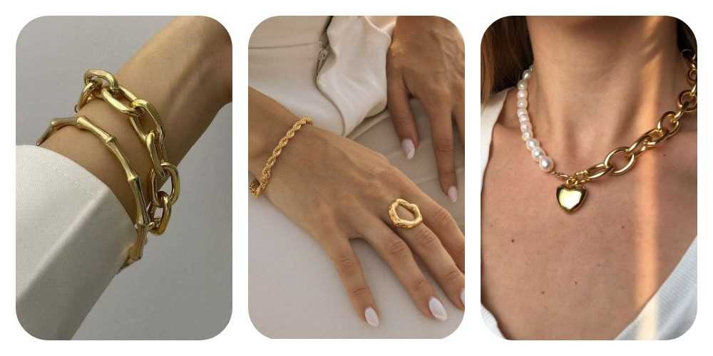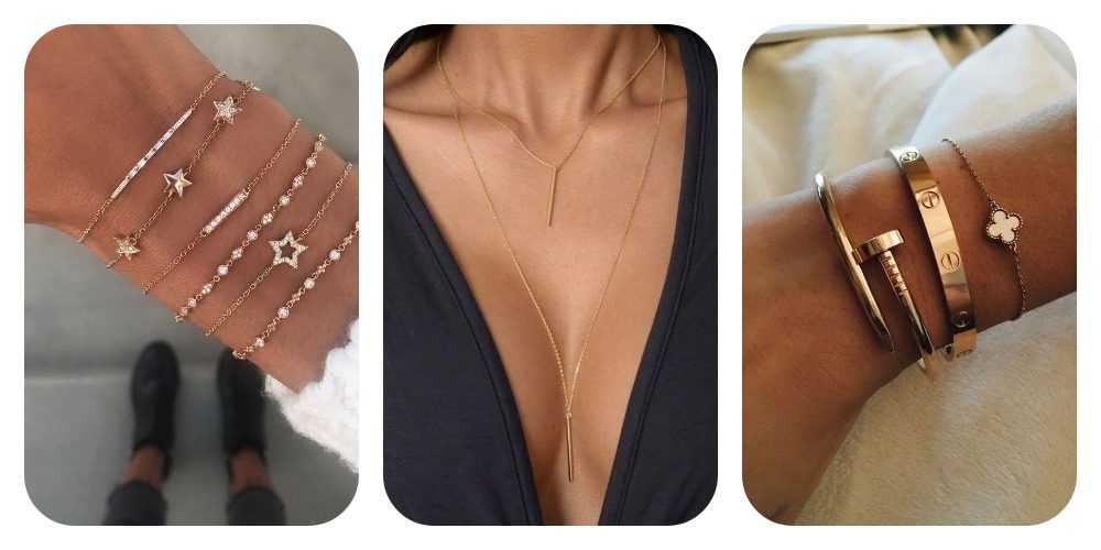 Могут быть самыми разными, однако есть одно важное правило – не стоит сочетать разные металлы. При создании образа лучше использовать ювелирные изделия из какого-то одного металла золота или серебра