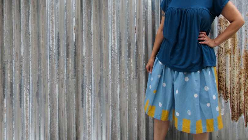Чтобы выкроить расклешенную юбку, следует сшить 2 или даже, 4 детали, расширенных книзу. Раскроить кокетку довольно легко — прямоугольная полоса, по своей длине эквивалентная обхвату груди с припуском 5 см на каждую сторону.