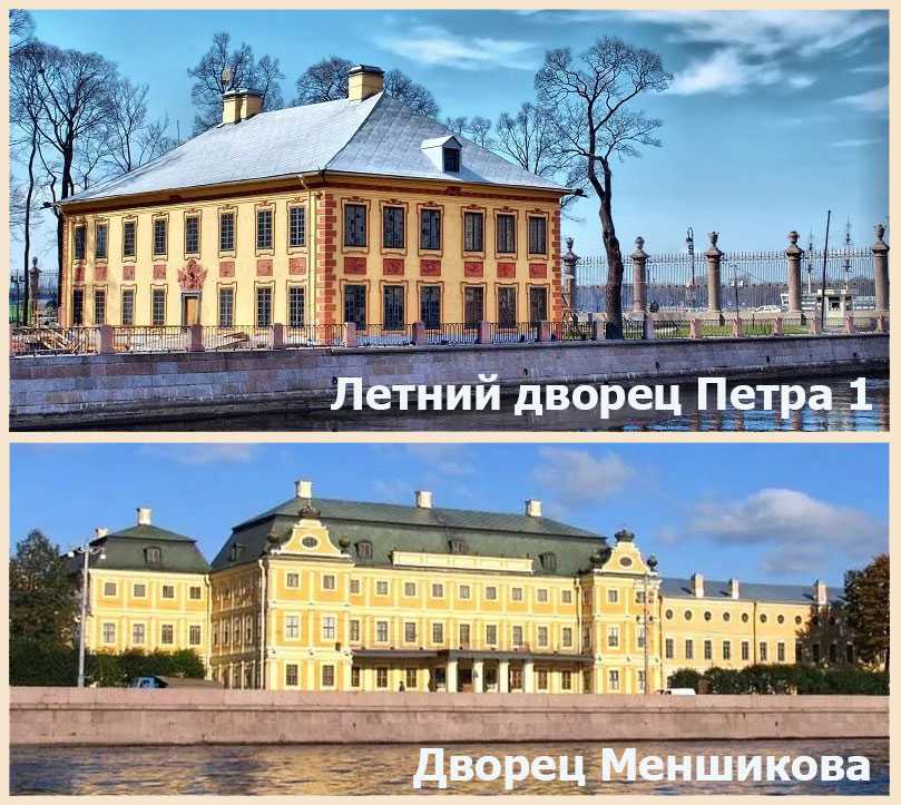 Архитектурными изысками отличались только административные здания и дворцы людей петровского окружения. Сам царь к роскоши был равнодушным. Для понимания этого достаточно просто посмотреть на фотографию Летнего дворца Петр 1 в Летнем саду Петербурга (простое двухэтажное здание) и на дворец Меншикова на Васильевском острове (настоящий дворец).