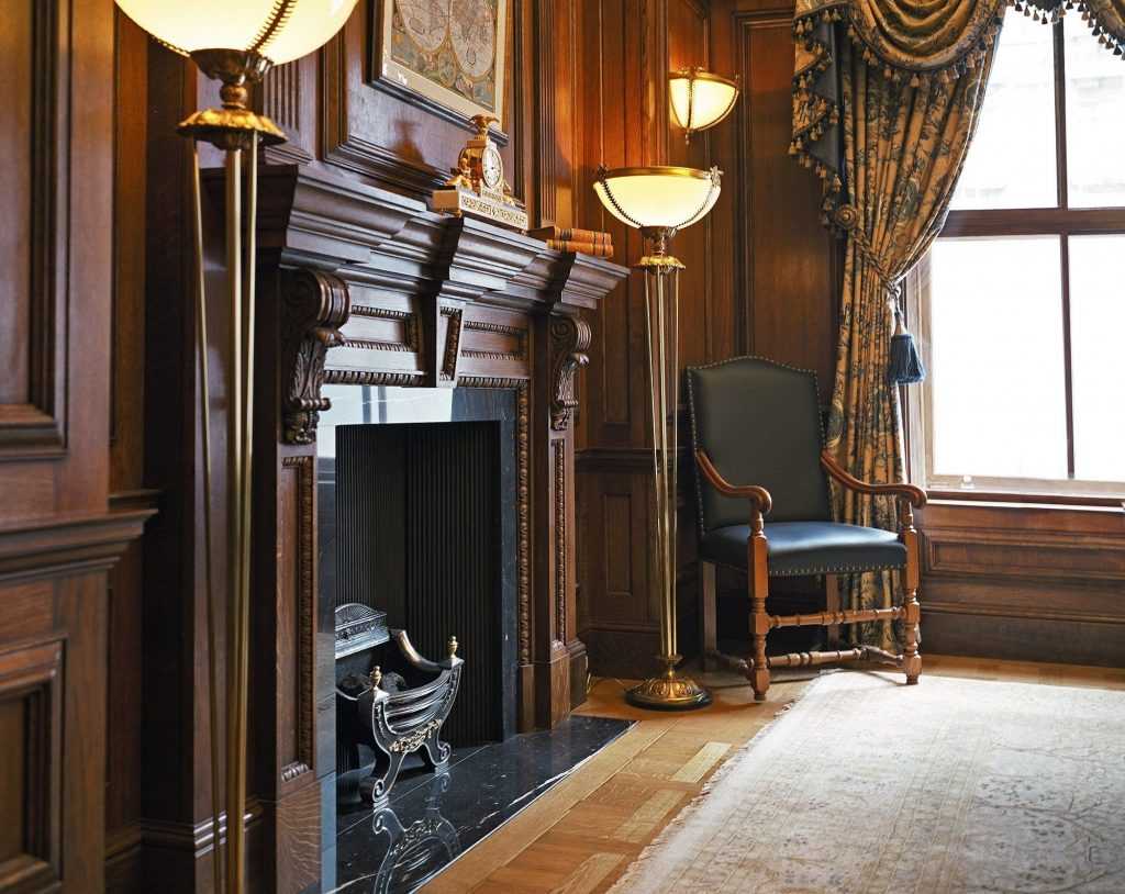 В особняке Уайтуик-Мэнор сохранились гардины и отделка камина по эскизам дизайнера.