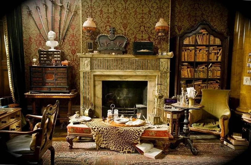 Желательно найти место для размещения камина из натурального камня, оградить его металлическим заборчиком. В современной интерпретации допустимо заменить настоящий огонь электрическим очагом пламени. Оформляя помещение в викторианском стиле нужно обладать идеальным чувством меры, чтобы создать гармонию в насыщенном пространстве. Густо заполненный интерьер не должен выглядеть захламлено.