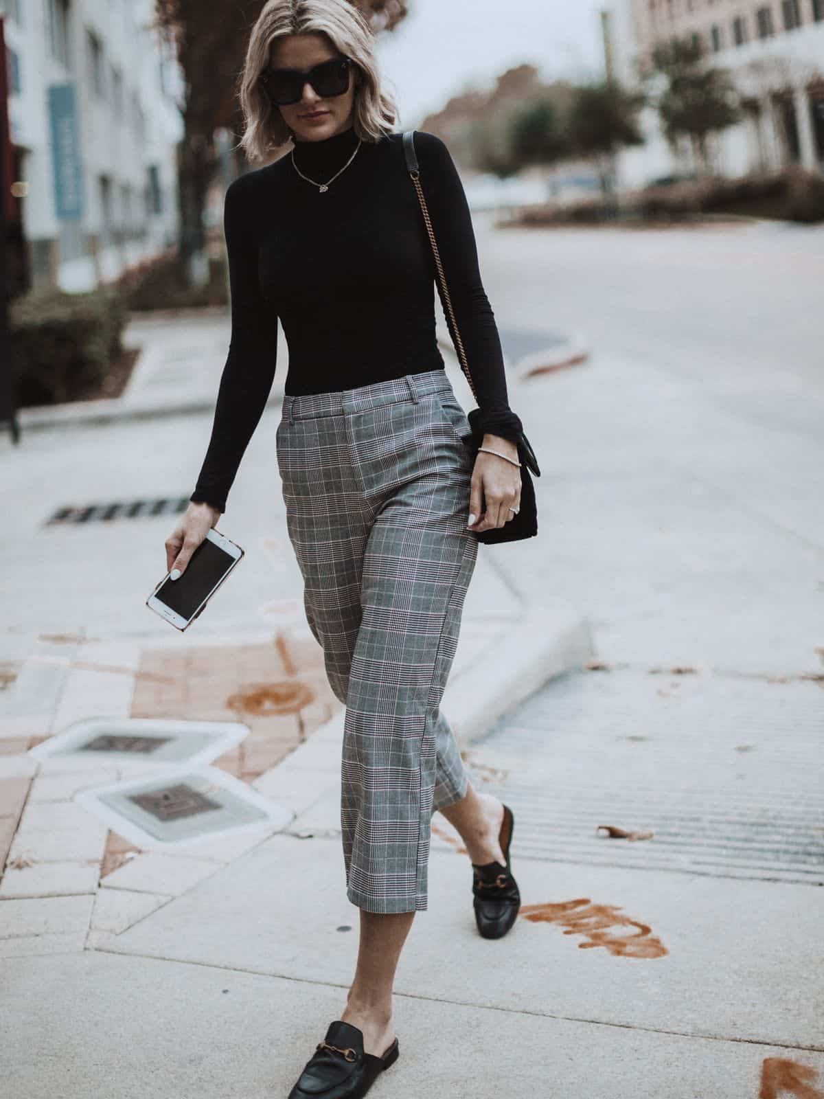 Обратите внимание на брючные костюмы, юбки-карандаш в сочетании с белыми блузами, рубашками и твидовыми жакетами. Ботильоны или классические лодочки дополнят образ