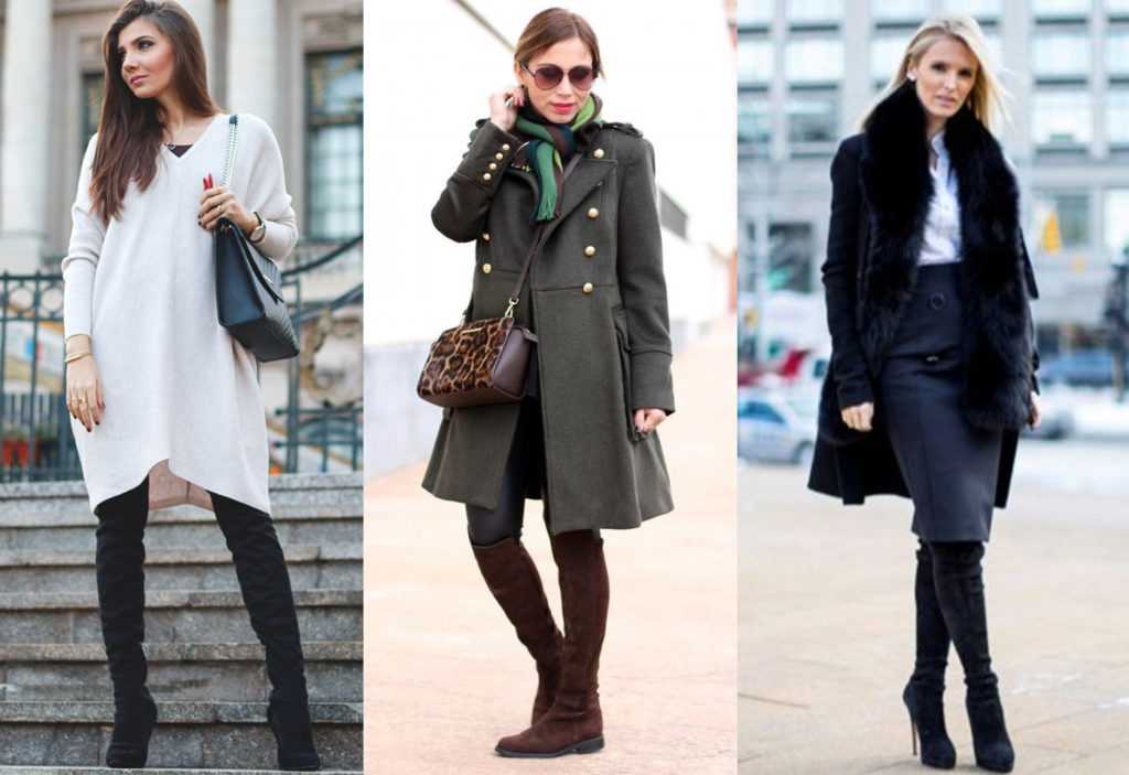 Ну и, конечно же, любимая многими девушками комбинация – коротенькое сексуальное платье и ботфорты. Чтобы оставаться в рамках приличия, наденьте сверху пальто или длинную накидку.