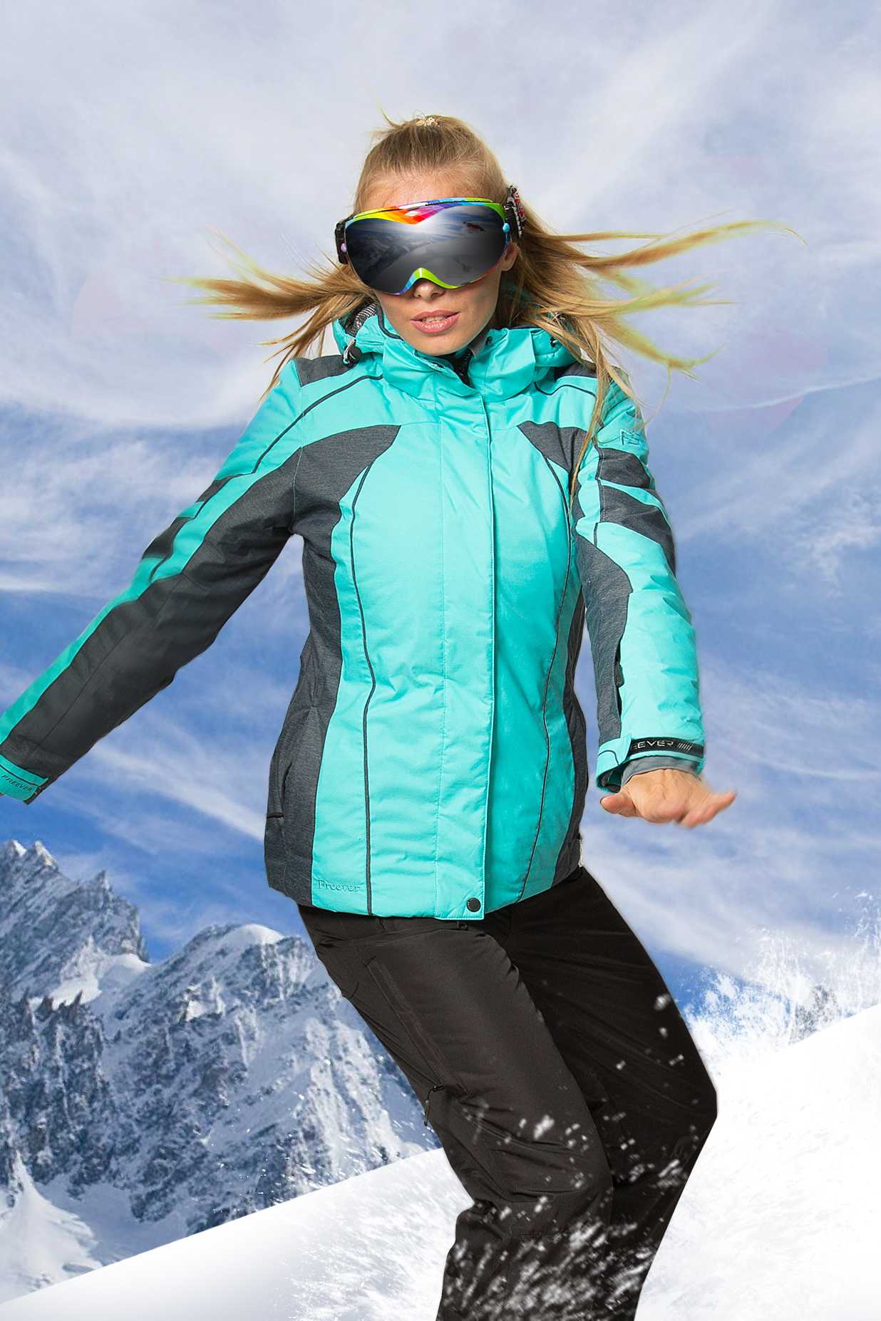 - лыжная куртка защищает от холодного ветра, осадков. Материал одежды отталкивает воду, грязь, благодаря чему можно без опаски падать в снег.