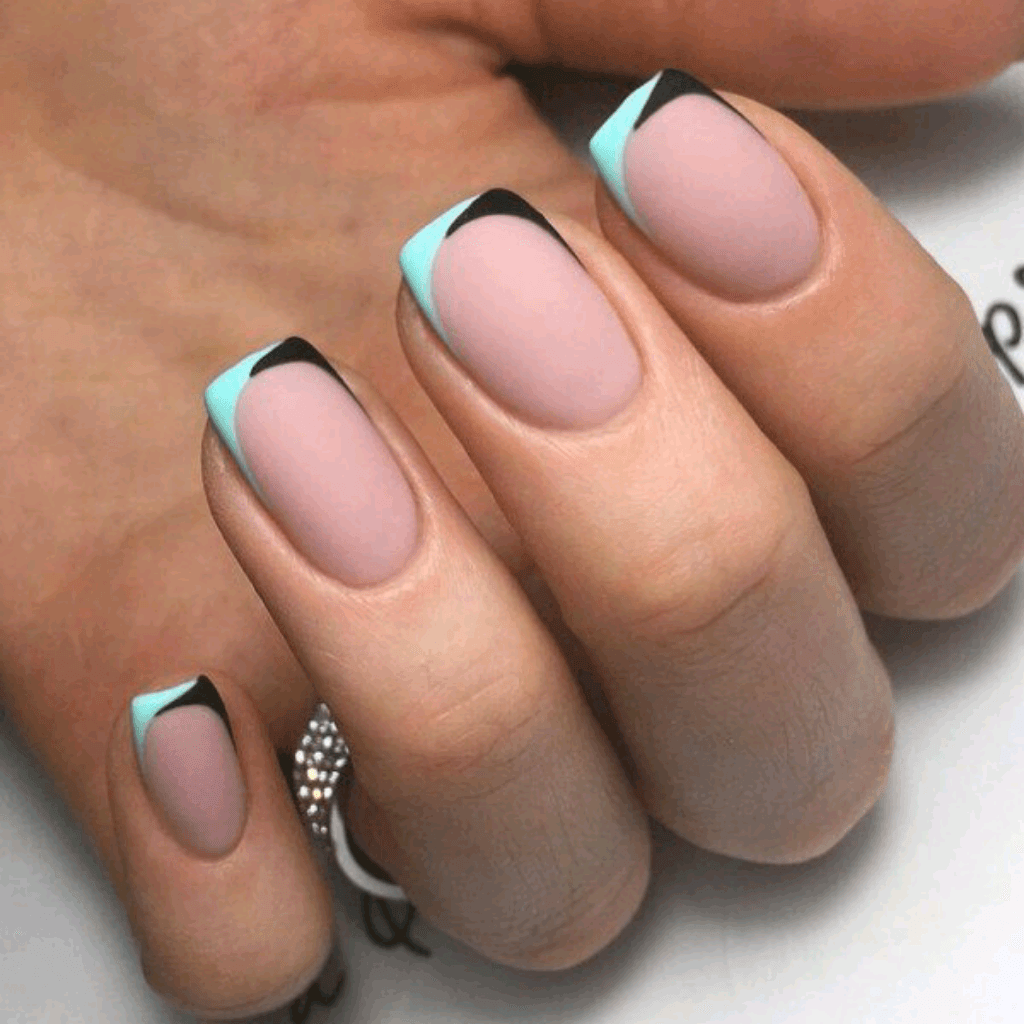 Зачастую френч делают на коротких ногтях с квадратной или «смягчённой» квадратной формой — такая комбинация придаёт пальчикам естественности.