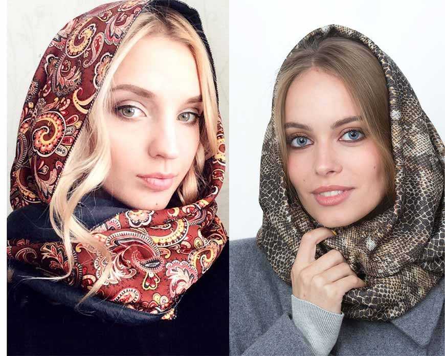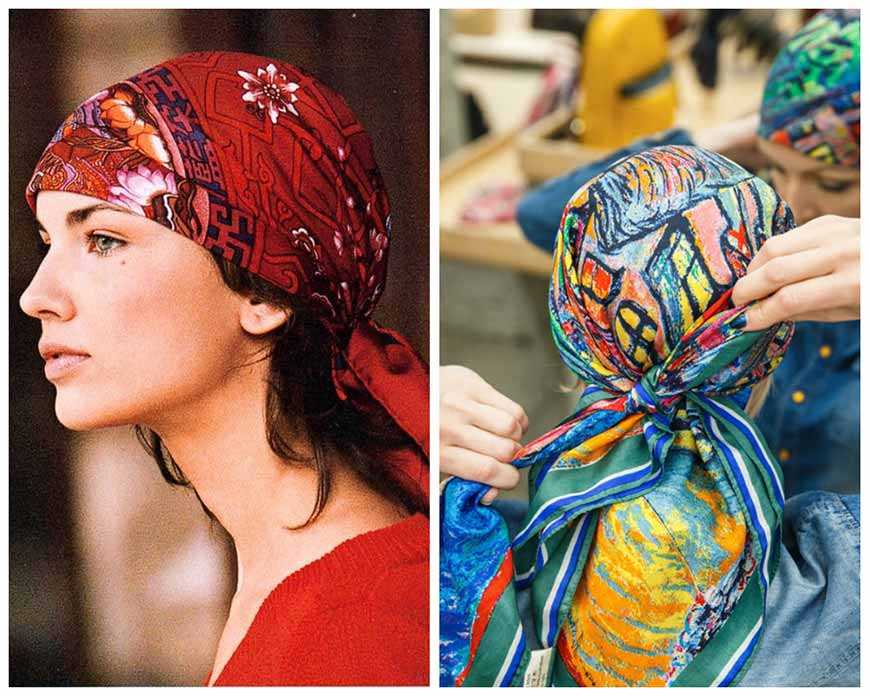 Чаще всего последний, надевая на голову, предварительно складывают по диагонали вдвое, и получается двойная косынка – более плотная и тёплая. Но любительницы носить платок на голове с особым шиком мастерят из куска ткани и тюрбаны, и изысканные головные уборы, и высокие башни. Всё зависит от фантазии и умения.