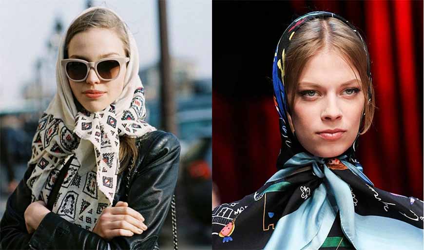 Один из самых простых, но в то же время стильных способов ношения платка. Все иконы стиля демонстрируют нам такой способ ношения платка на голове. Однако особенно интересно, что таким образом платки на Руси носили издавна простые крестьянки, даже не подозревая, что данный способ завязывать платок на голове перекочует к модницам на красные ковровые дорожки.