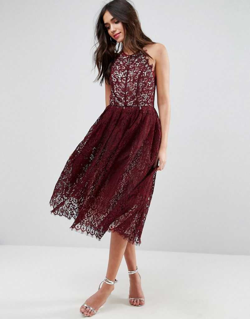 Игривые и кокетливые короткие расклешенные платья нередко дополняются такими декоративными элементами, как кружевной корсет или вставки из этого воздушного материала, аккуратные бретельки, рукава-фонарики и так далее. Такие модели идеально сочетаются с туфлями или босоножками на высоком каблуке, однако, высокие и стройные модницы могут себе позволить и тандем с балетками.