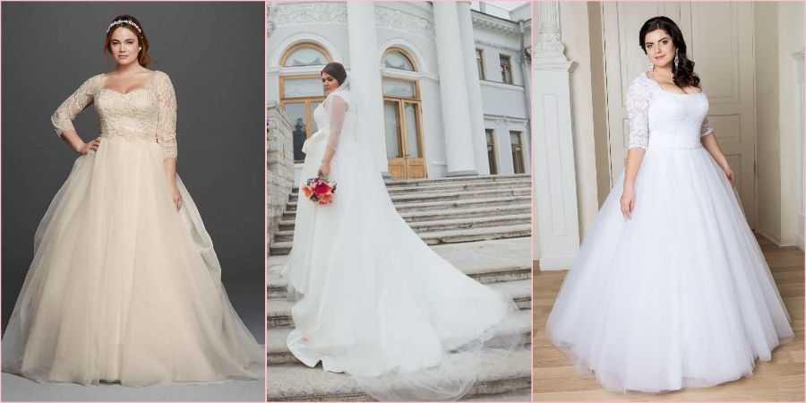 Полные барышни могут смело выбирать платья с объемной юбкой. В таком наряде они будут выглядеть, как истинные королевны. Полноту рук можно скрыть за ажурной утонченностью рукавчиков или перчаток. Также очень выгодно на полной фигуре смотрятся пышные юбки со шлейфом.