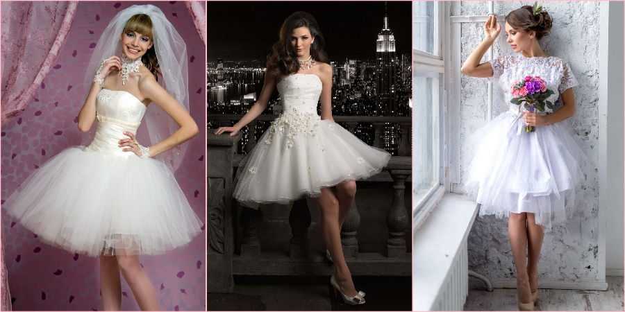 Рассматриваемые модели отличное решение для девушек, мечтающих выглядеть в свой свадебный день настоящей принцессой, но которые по каким-то причинам, не хотят надевать длинный наряд.