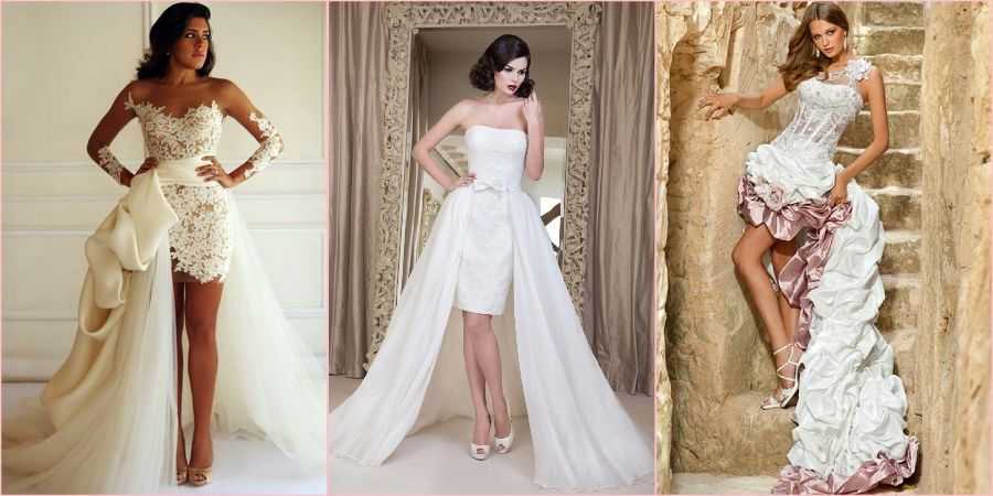 Еще один свадебный вариант для барышень, которые хотят совместить длинное платье с коротким.