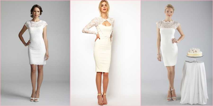 Фото маленького белого платья-футляр девушке на свадьбу