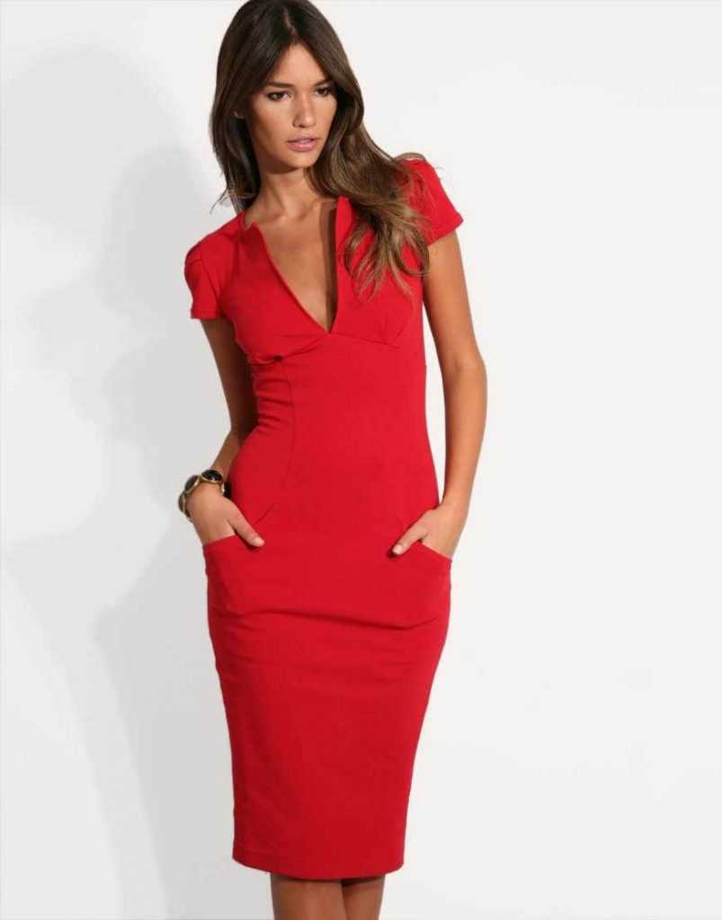 В повседневных платьях-футлярах иногда делают карманы в боковых швах.