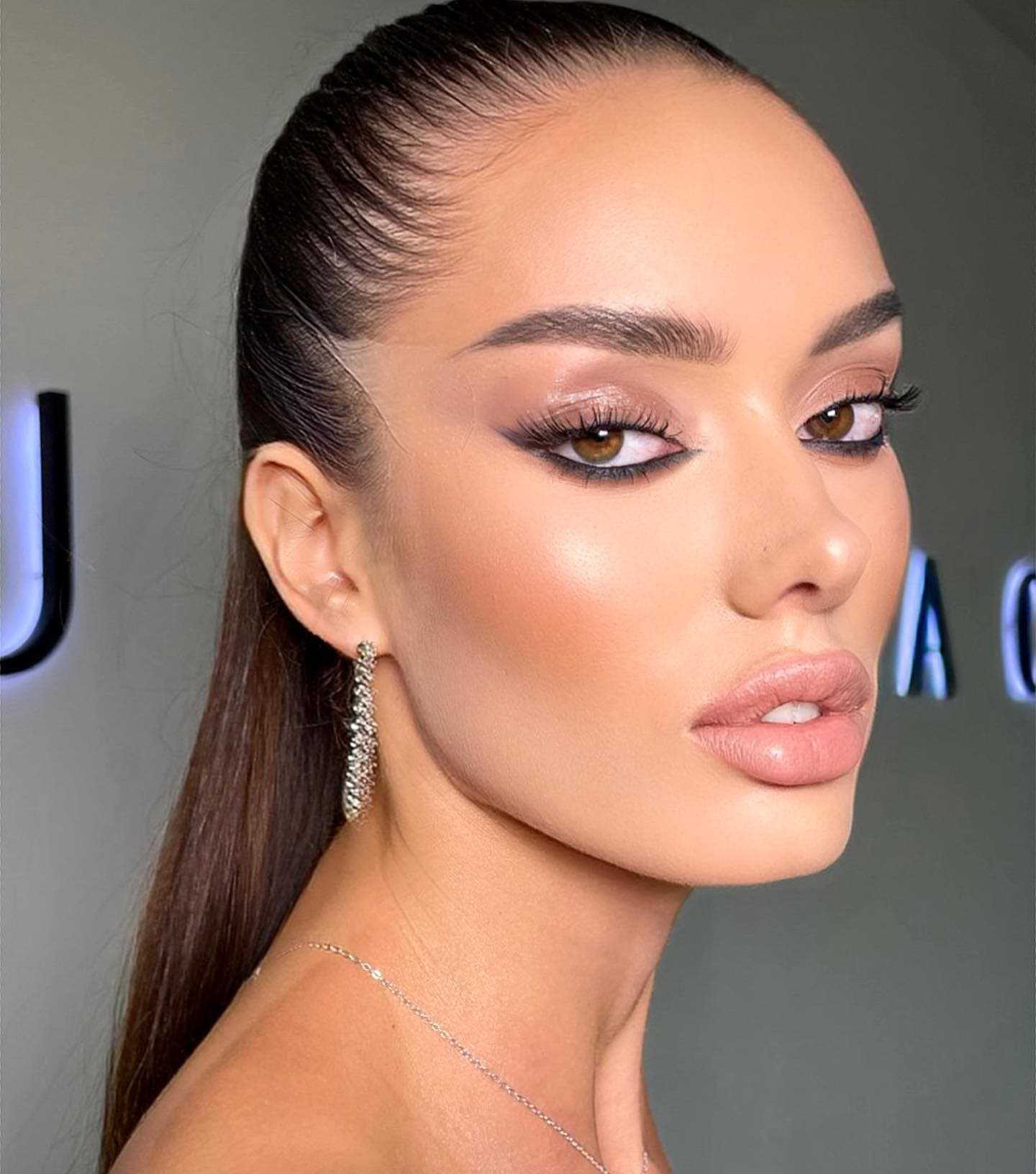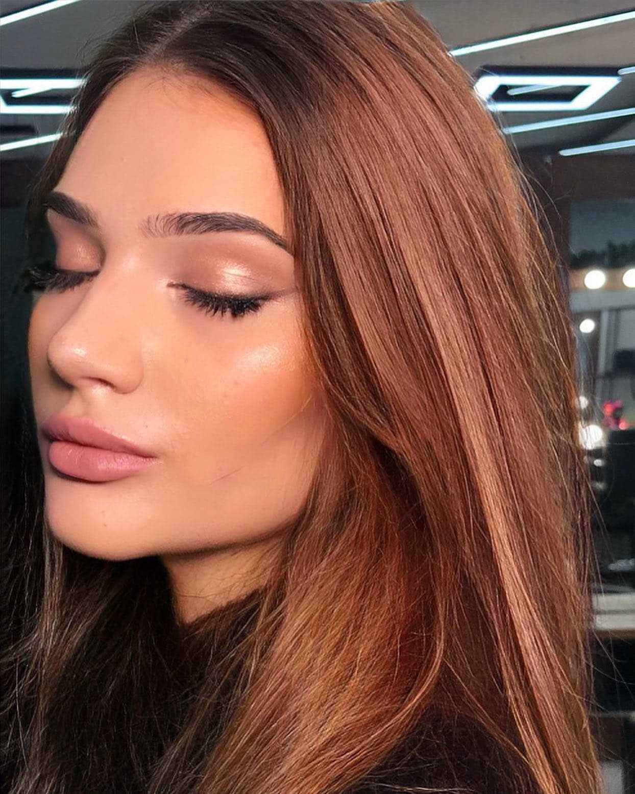- Эффектность в естественности. Если девушка ценит легкий и естественный макияж, можно использовать цвета, приближенные к натуральным. К макияжу в спокойных оттенках следует добавить немного блеска, чтобы создать легкий, милый вечерний образ.