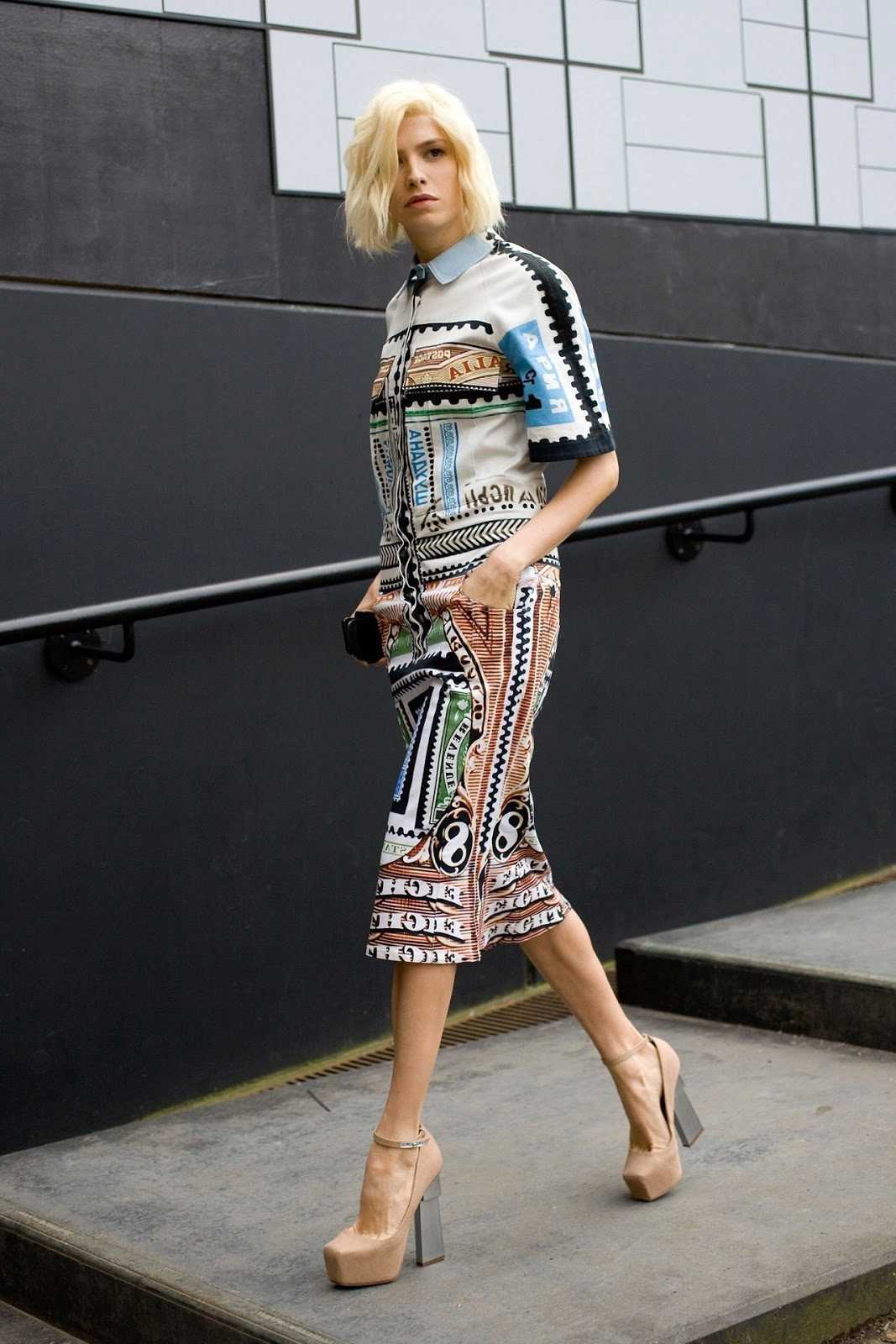 #5: Юбки-миди создают прекрасный дуэт с сандалиями на платформе, особенно весной, летом и ранней осенью. Такой образ сделает ноги визуально длиннее, а фигуру — стройнее. Сверху можно добавить кроп-топ, а можно создать более скромный образ, сочетая плиссированную юбку, сандалии на толстой подошве и белую рубашку.