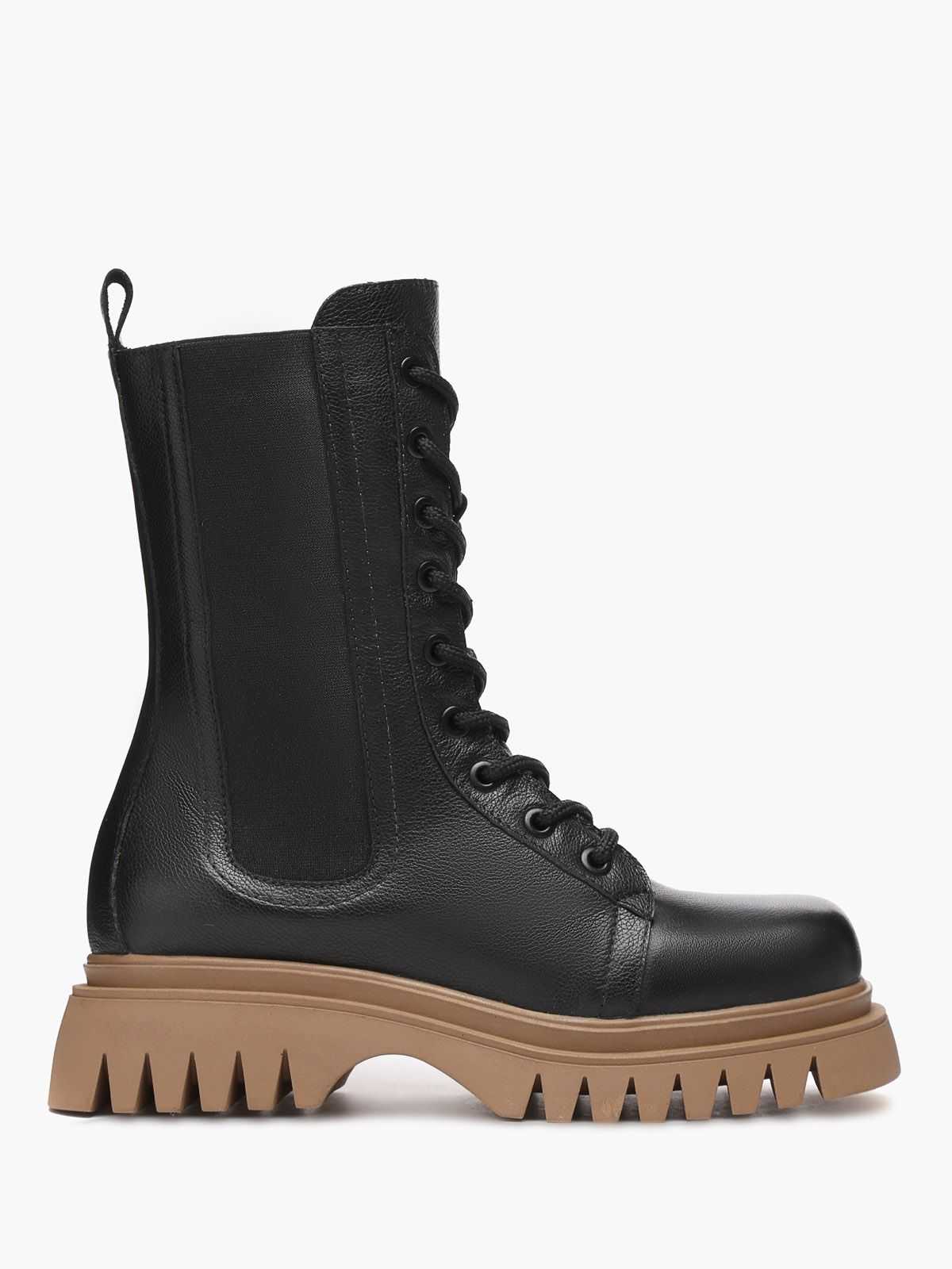 Идеи: с чем носить сапоги на высоких каблуках и тракторной подошве