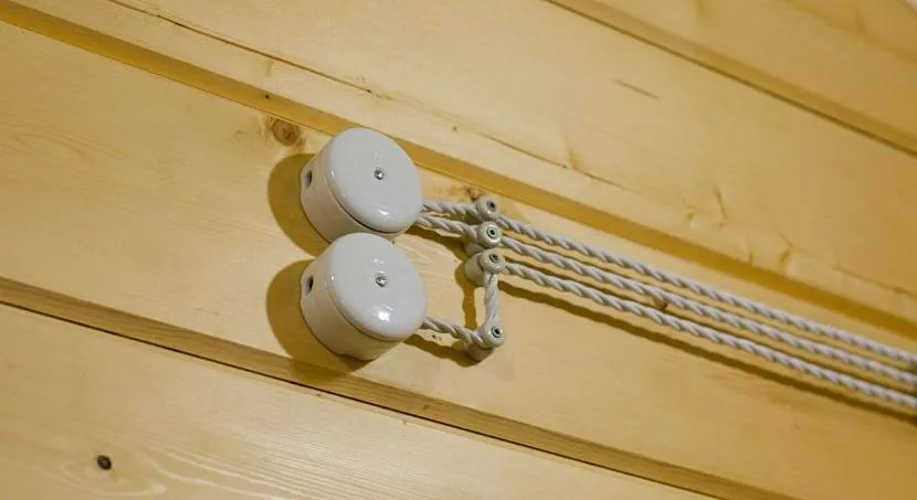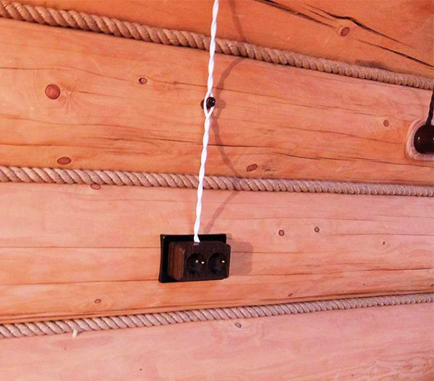На фоне деревянных стен изоляторы смотрятся органичнее, чем кабель-каналы