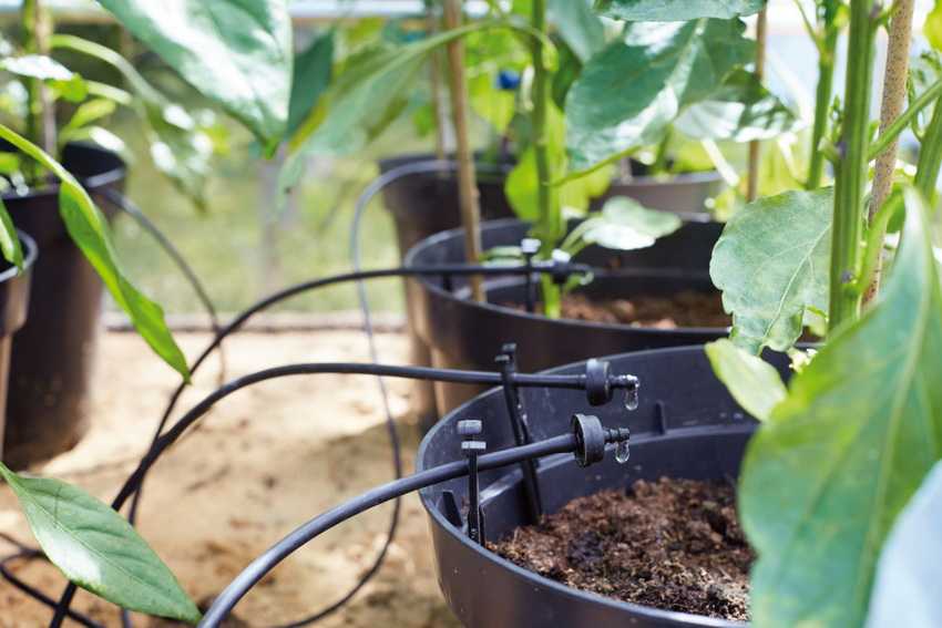 Капельный полив обычно используют для увлажнения прикорневых зон растения