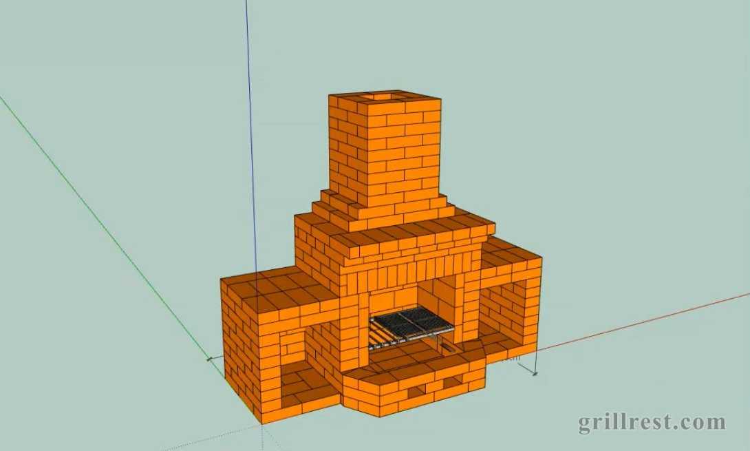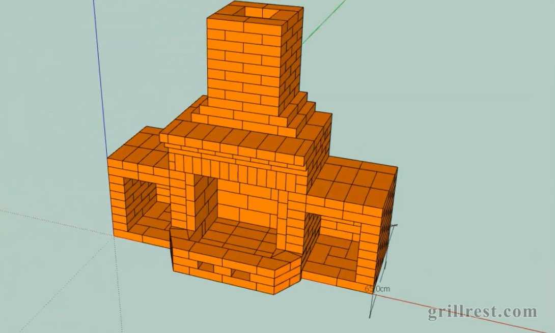 Фото 8. Компьютерная модель барбекю из кирпича: порядовка и схема постройки. Барбекю сложить будет легче с более подробной схемой, но даже такой чертеж ускоряет возведение конструкции.