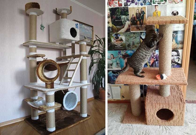 Пожалуй, самый сложный и долгий вариант — комплекс для вашего питомца своими руками. В нем может быть всё что угодно: от когтеточки с домиком до лабиринта с вращающимся колесом. Всё зависит от ваших желаний, фантазии и возможностей.