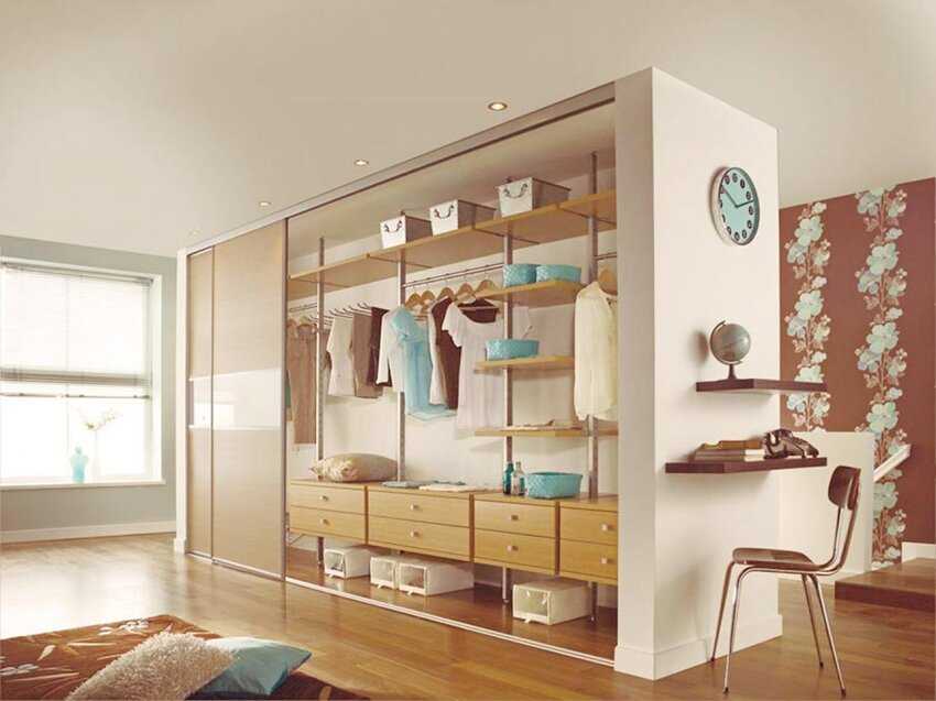 Конструкции открытого типа представляют собой гардеробные, лишенные дверей, перегородок и даже ящиков для хранения.