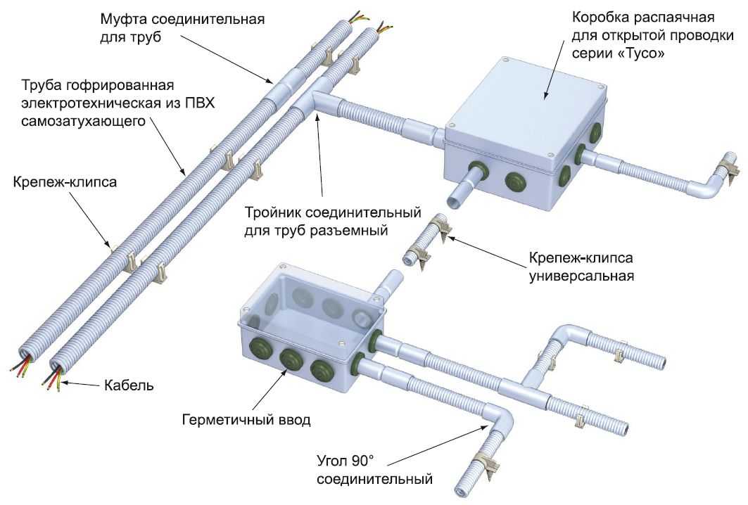 Правила монтажа кабеля в гофре в стенах и по потолку