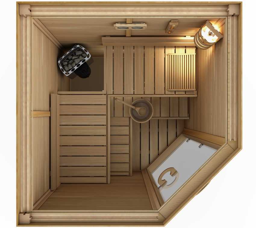 Производя соответствующие расчеты, на каждого человека важно отнести не меньше 2 квадратом пространства. Высота потолка в помещении должна быть от 2 и больше метров. Если решено не покупать готовую миниатюрную сауну, а обустраивать ее своими руками, то можно оставлять тот, который есть