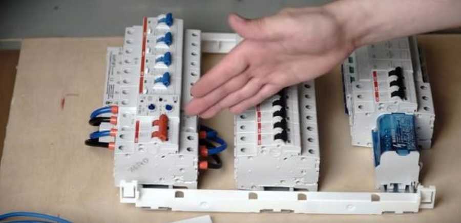 5: Теперь нужно отключить питание и продолжить сборку – следует запитать гребенкой группу автоматических выключателей на центральной рейке. Здесь у нас будет 3 группы (первая — варочная панель/духовка, вторая – посудомоечная и стиральная машины, третья — розетки).