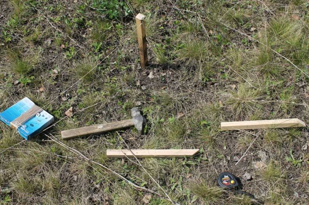 - выполнить разметку заостренными колышками (высота 60-70 см), установленных в местах опор на расстоянии 2-2,5 метра друг от друга;