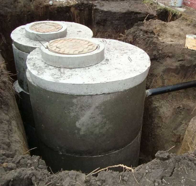 Для типового железобетонного септика с двумя камерами будет достаточно двух полутораметровых колец или четырех однометровых.