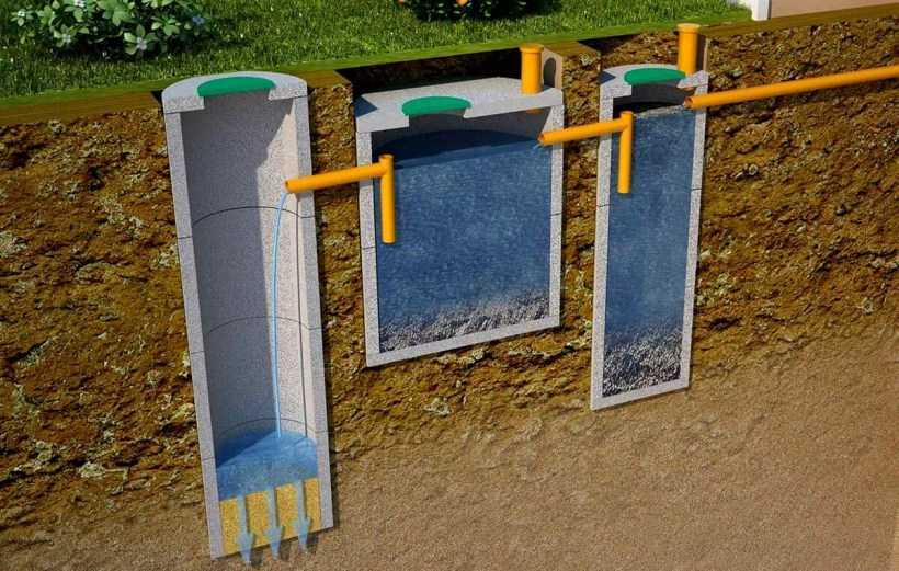 Трехкамерный септик с фильтрующей траншеей