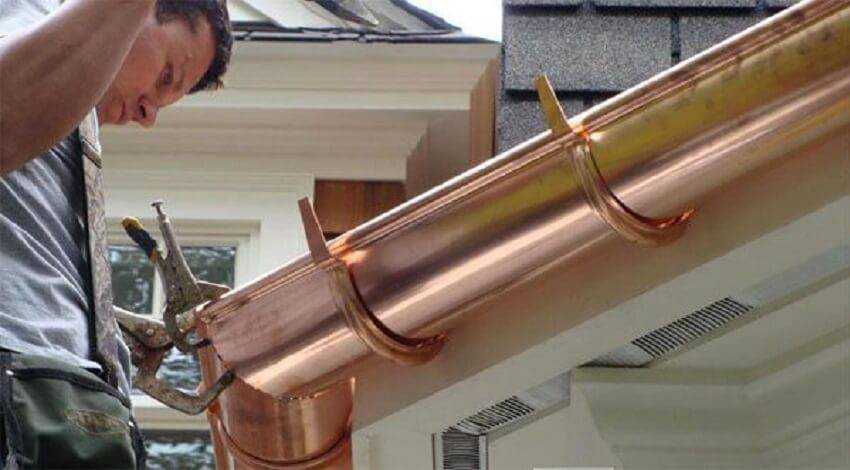 Монтаж медного водостока