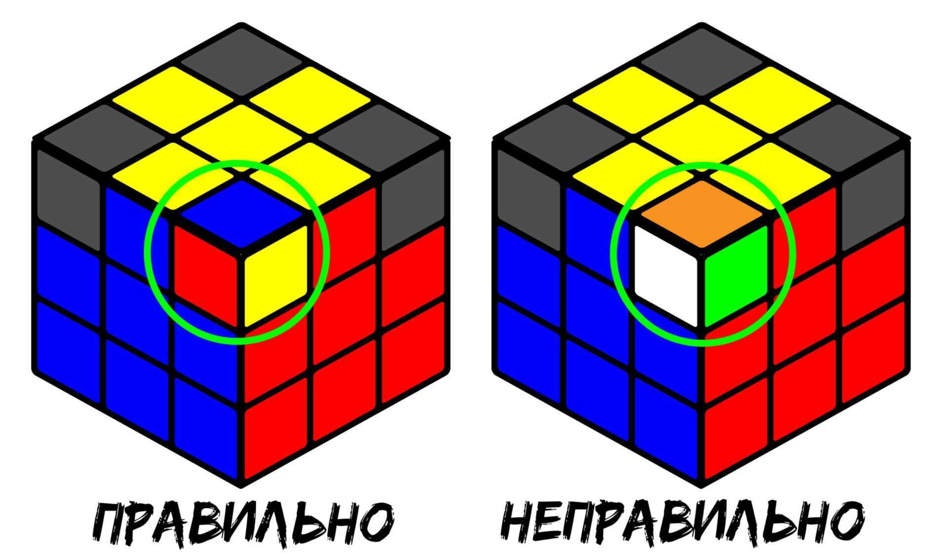 Отличие правильного креста от обычного состоит в том, что в положении правильного креста центры смежных сторон относительно белой грани цветом совпадают с элементами верхнего слоя.