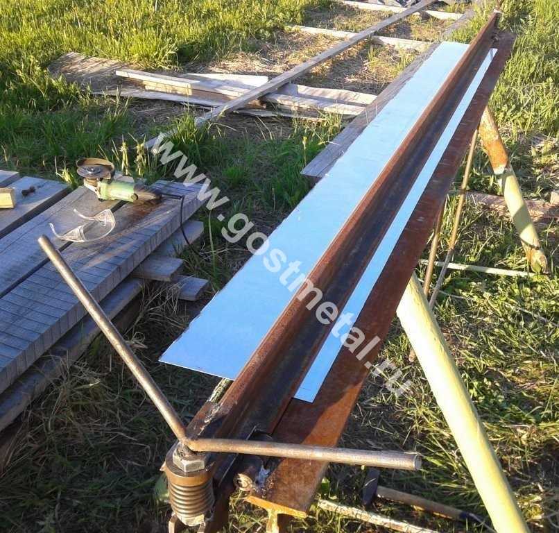 Для импровизированной гибки листового металла мы использовали тавр 70 мм — три куска длиной 2,5 м, два шурупа диаметром 20 мм, небольшой кусок металла толщиной 5 мм (для резки балок), пружину. Вот процедура: