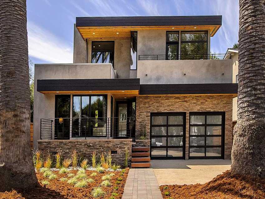 Дом, отделанный снаружи камнем, не боится даже больших амплитуд температур, не изменяет оттенок под влиянием солнечных лучей и не подвергается воздействию влажности. Если соблюдать все правила монтажа облицовки стен, обшивку будет невозможно повредить, что и является гарантией долговечного использования. Для изготовления каменных плит применяются такие виды пород: