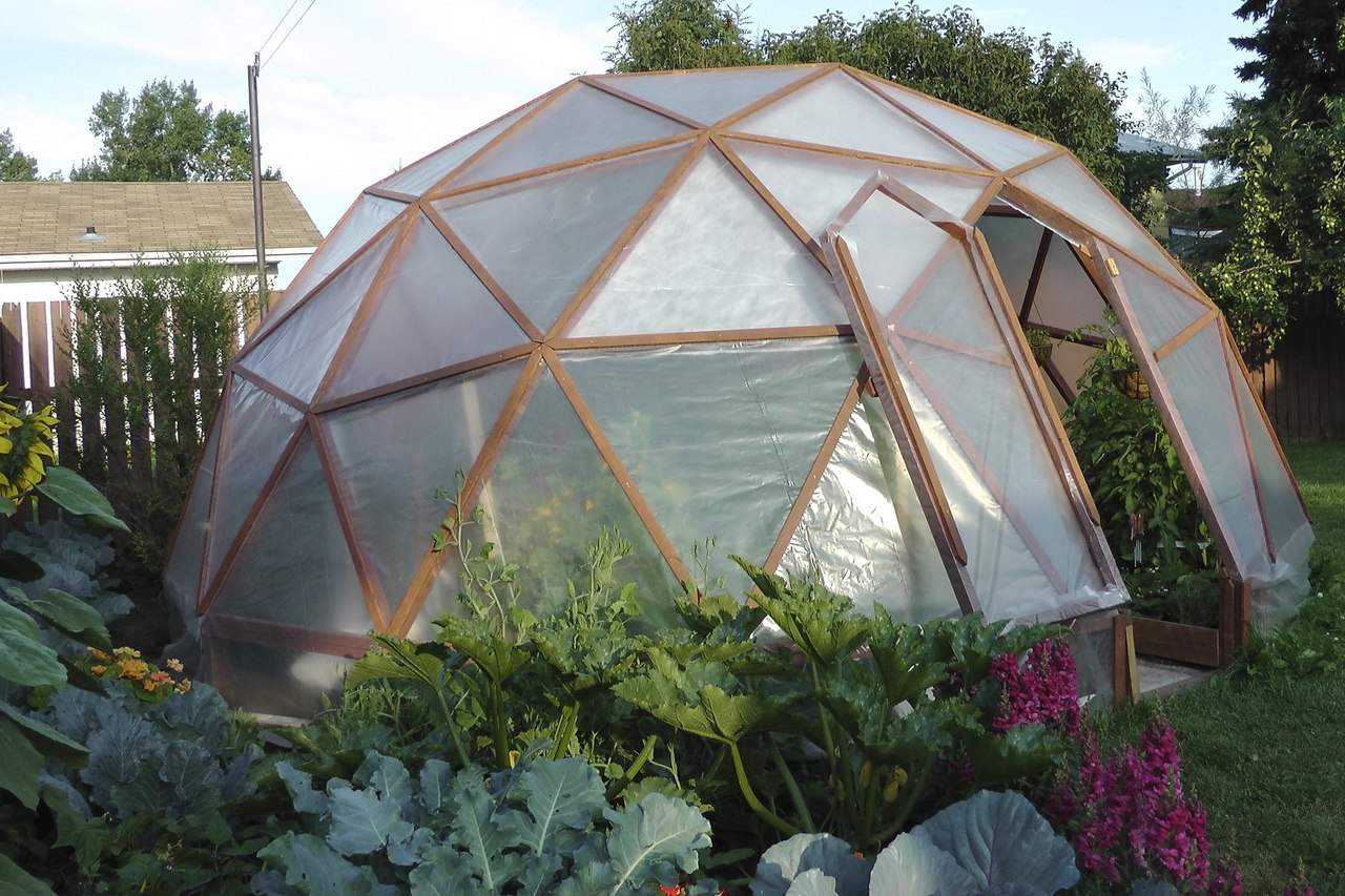 Оригинально смотрится круглый парник. Он может представлять собой, например, арочную конструкцию. Используют такие строения и для проращивания рассады, и для полноценного выращивания различных культур, включая этап сбора плодов. Под куполом замечательно держится тепло, а сами конструкции такой формы отличаются прочностью, выдерживая хороший слой снега зимой.