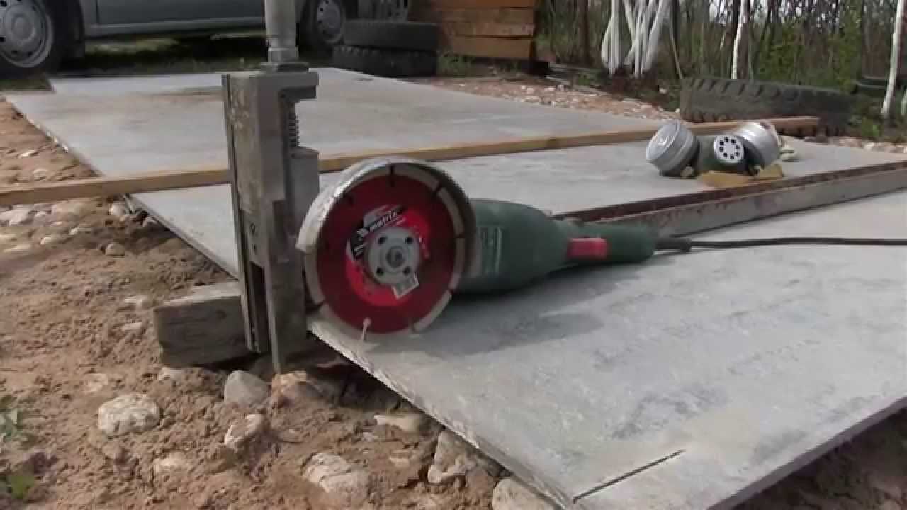 Для этого нужно иметь болгарку с алмазным диском. Она сможет разрезать на нужные по размеру части большое количество шифера. Причем при помощи данного инструмента сделать это можно будет быстро и безопасно. Единственным минусом во всем процессе станет наличие большого количества пыли, поэтому нужно обязательно защитить глаза и органы дыхания, а работы проводить только на улице. Работать болгаркой нужно, держа ее одной рукой и таща на себя. Под своим собственным весом инструмент будет пилить плоский шифер эффективней.