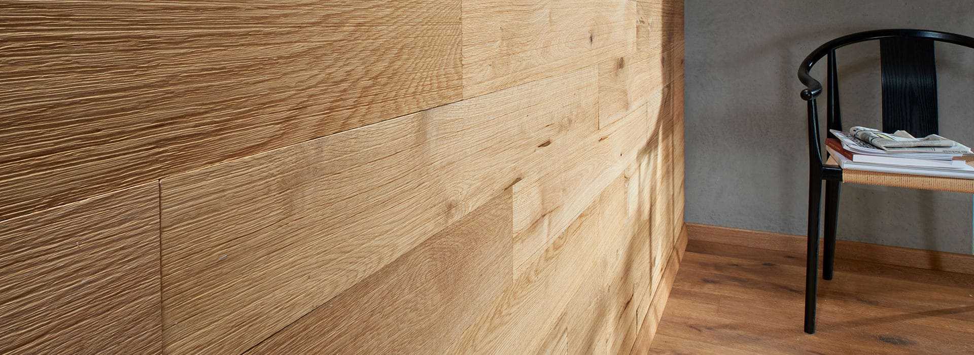Шикарные стеновые панели для внутренней отделки изготавливаются целиком из массива древесины. Благодаря этому деревянные настенные покрытия обладают массой преимуществ натурального материала, но и не лишены недостатков, связанных с ограничениями по применению в помещениях с повышенной влажностью. Для производства используются породы дуба, ясеня или экзотическая древесина: венге, тик, мербау, кумару, палисандр, сукупира. Деревянная отделка для стен — решение для элитных офисов и личных кабинетов.