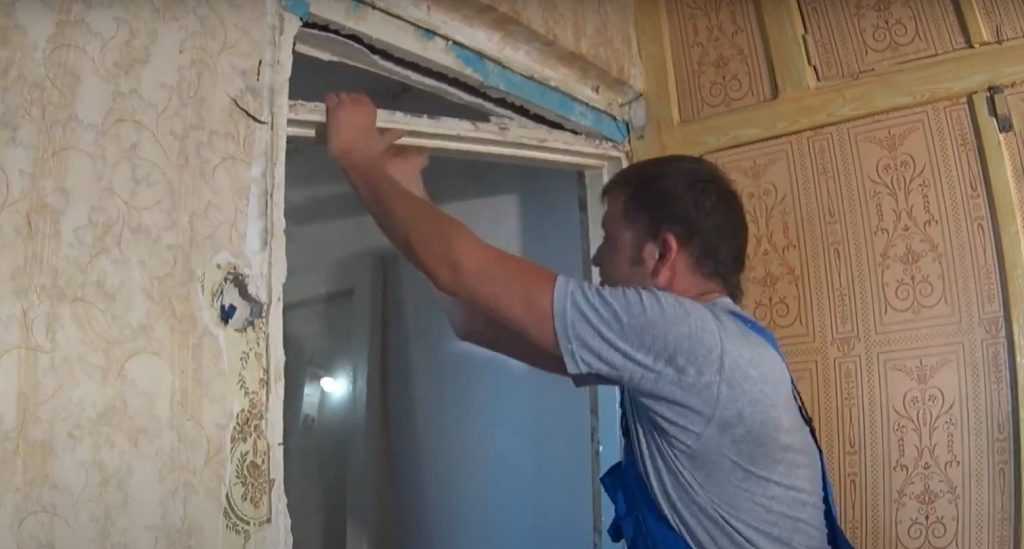 - Когда все элементы конструкции двери удалены, проём зачищается и, при необходимости, дорабатывается с помощью штукатурки до достижения ровной поверхности его торцевой части.