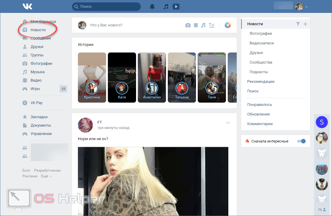 Загрузится страница новостей. Вот и всё – вход выполнен!