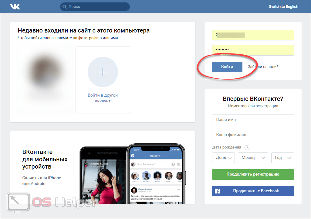 Войти на Мою страницу Вконтакте без пароля – подробный способ