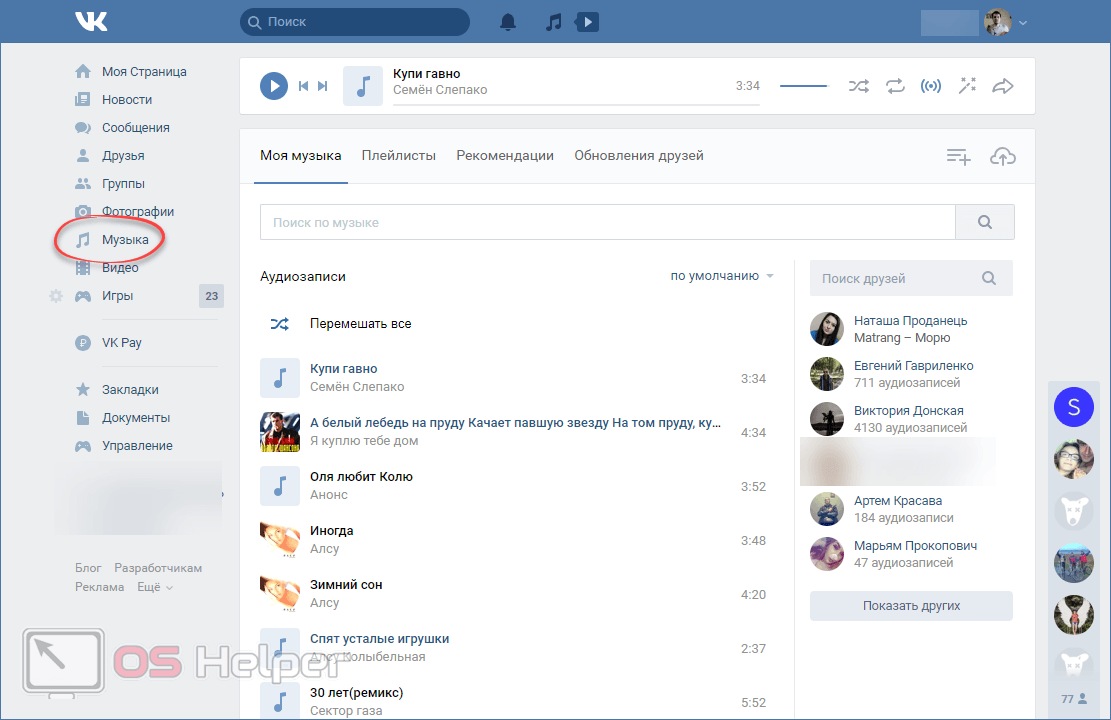 Также VKontakte есть музыка, которую можно слушать прямо с сайта.